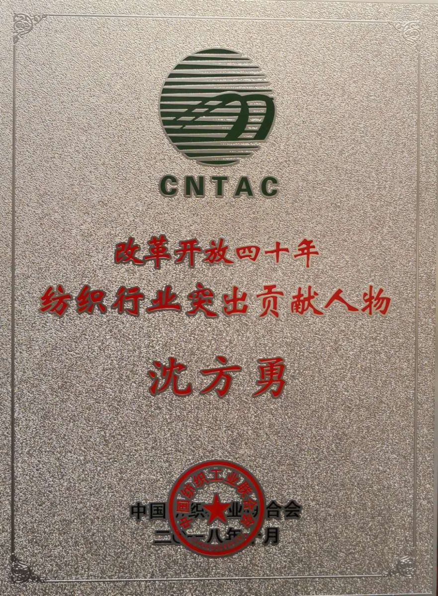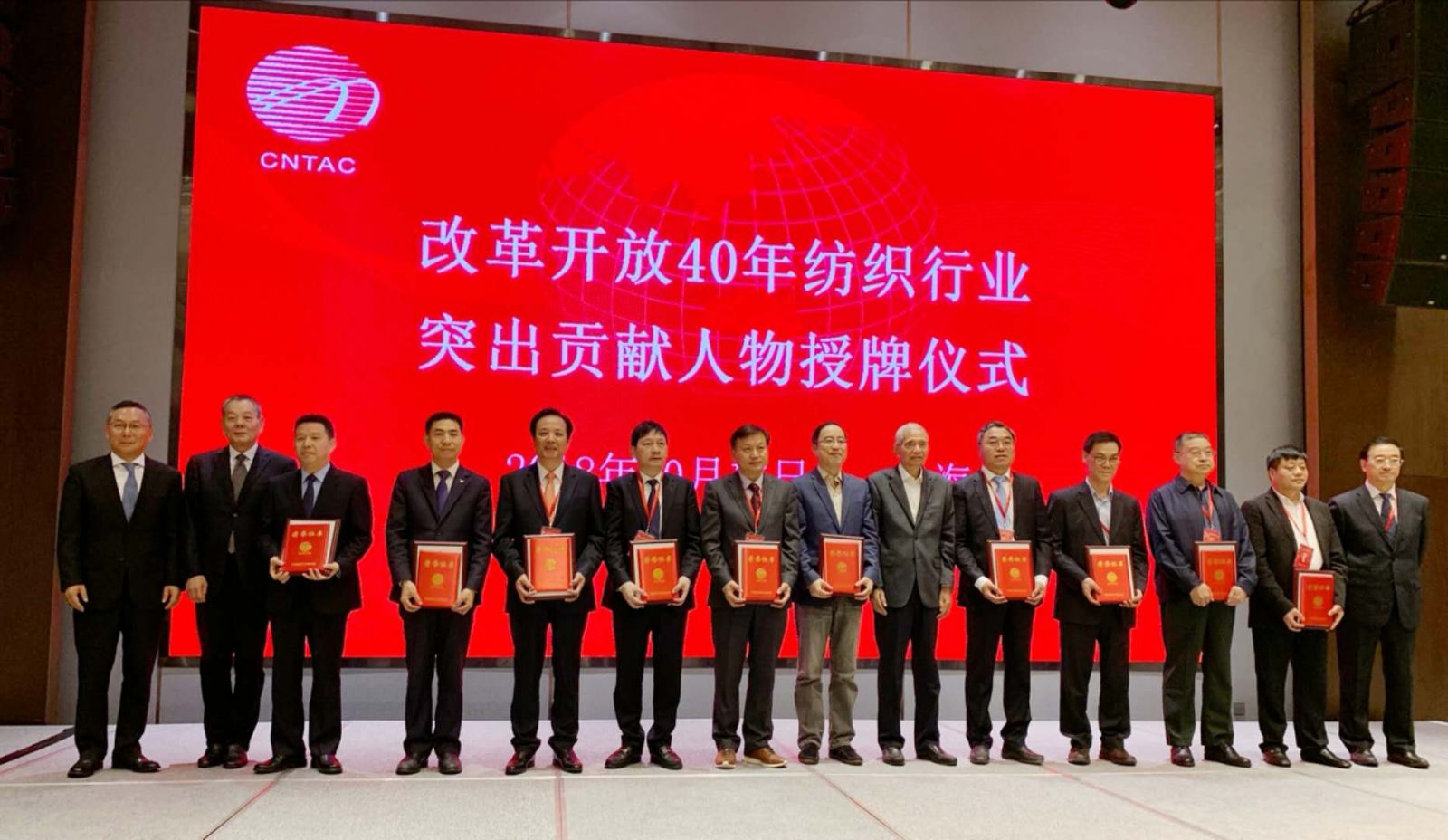 改革開放四十年,紡織工業歷經風雨洗禮,取得了一系列舉世矚目的發展成就,涌現出一批扎根行業深處、為行業發展貢獻畢生力量的突出貢獻人物。中國紡織工業聯合會為樹立責任擔當、凝聚力量的行業典范,弘揚改革創新、開放包容的時代精神,開展了改革開放四十年紡織行業突出貢獻人物的評選、表彰活動,并于2018年10月16日在上海召開的第四屆第四次常務理事擴大會上舉行了授牌儀式。湖北天門紡織機械股份有限公司董事長沈方勇有幸成為登臺領獎的代表之一。
