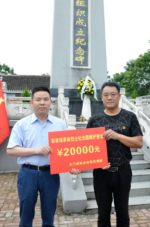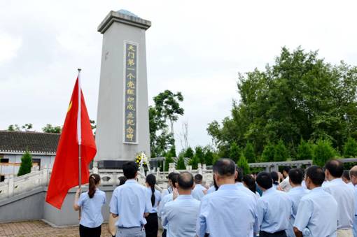 雨霽初晴,風清氣爽。2019年6月29日下午,天門紡機50多名黨員和入黨積極分子,懷著崇高的敬意,來到位于天門盧市鎮彭家垴村的烈士紀念園舉行紀念中國共產黨成立九十八周年主題黨日活動。盧市鎮委、鎮政府及彭家垴村黨支部主要負責人熱情接待并參加了活動。