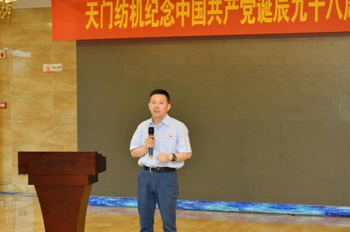 參觀結束后,全體人員返回市區君佳酒店舉行主題黨日活動的最后兩個議程。焦倫進總經理作了題為“堅定信心,敢于擔當,努力開創天門紡機高質量發展新局面”的半年工作報告,他動員黨員干部堅定信念,增強動力,創造業績,為打造天門紡機百年老字號企業而努力奮斗;緊接著,沈方勇董事長以“改革發展關鍵時期的歷史使命”為題,發表即興演講。從上下五千年的文明史,到九十八個春秋的中國共產黨奮斗史,縱橫捭闔,借史鑒今。他號召黨員干部發揚黨的優良傳統,不忘初心,牢記使命,在各自的崗位上加倍努力工作,充分發揮黨員的先鋒模范作用,無愧于共產黨員的光榮稱號。