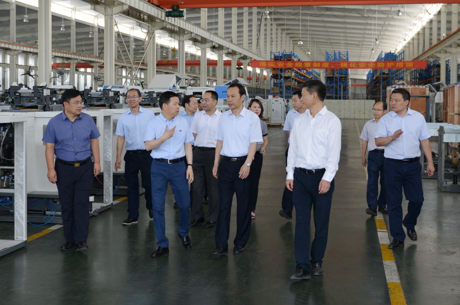 2019年7月16日上午,湖北省委副書記、武漢市委書記馬國強在天門市委書記莊光明的陪同下,考察了天門紡機。公司董事長沈方勇引導馬書記一行參觀了生產現場和綜合展示廳,并向馬書記介紹了企業基本情況。沈方勇說:天門紡機是一家老字號機械制造企業,通過改革、改制、改造,成為國內集研發、生產、銷售于一體的紡織裝備重要供應商和中國紡織機械協會副會長單位,主導產品棉紡并條機在國內無論生產規模還是產銷量均處于領先地位。雖然今年以來中美貿易摩擦給行業帶來了許多不利影響,但目前公司生產經營運行正常,新產品研發后勁十足,下一個趕超的目標是代表世界先進水平的瑞士立達和德國特呂茨勒的同類產品,力爭打造國際品牌,實現可持續發展。馬書記聽到匯報后表示贊賞,希望天門紡機今后在產品技術上不斷創新,在品牌培育上繼續發力,在生產經營上進一步做大做強,為民族工業爭氣爭光。