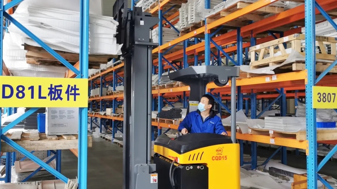倉庫主管胡旭峰根據發貨單對號發放產品部件