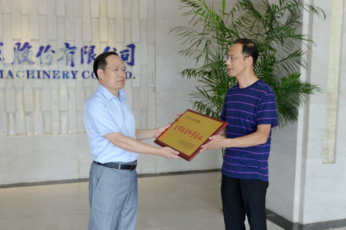 8月18日,天門市市場監督管理局對天門紡機獲得的"文明誠信私營企業 "榮譽進行現場授牌,黨委書記魯德文代表公司接牌 。