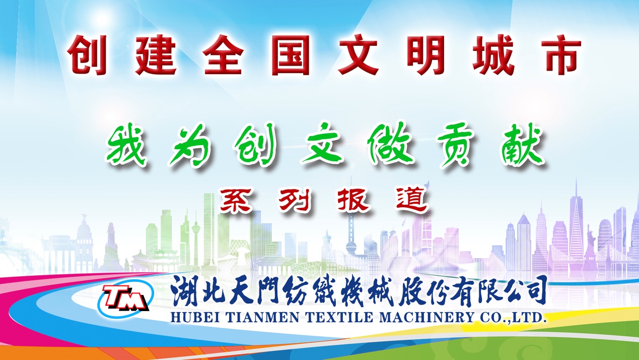 編者按:在全市上下如火如荼開展“創(chuàng)建全國文明城市”活動之際,天門紡機動員全體員工開展“我為創(chuàng)文做貢獻(xiàn)”系列活動,從廠區(qū)一角一落的環(huán)境衛(wèi)生整治,到員工的一言一行一衣,從車間里“6S”管理的推廣應(yīng)用,到對產(chǎn)品品質(zhì)的不斷改進(jìn)提升,從誠信經(jīng)營,到客戶至上,無一不體現(xiàn)著天門紡機對文明精髓的理解、對員工文明素養(yǎng)的塑造以及發(fā)展高質(zhì)量工業(yè)文明的執(zhí)著追求。結(jié)合“我為創(chuàng)文明做貢獻(xiàn)”系列活動的持續(xù)深入開展,公司將對系例活動進(jìn)行持續(xù)報道。
