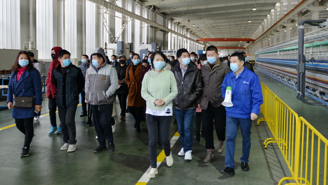 沈方勇董事長帶領(lǐng)求職人員參觀生產(chǎn)現(xiàn)場。疫情期間,天門紡機兌現(xiàn)不給黨和政府添麻煩、不給疫情防控造壓力、不給社會就業(yè)增負(fù)擔(dān)的承諾,想方設(shè)法招賢納士擴大就業(yè)。