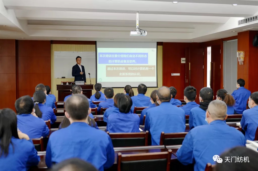 10月24日,天門紡機舉行智慧工廠首場培訓,公司“科技副總”、中南民族大學講師陳瑤博士授課,黨委書記魯德文主持并全程參訓,50余名管理干部及員工聆聽了培訓課。