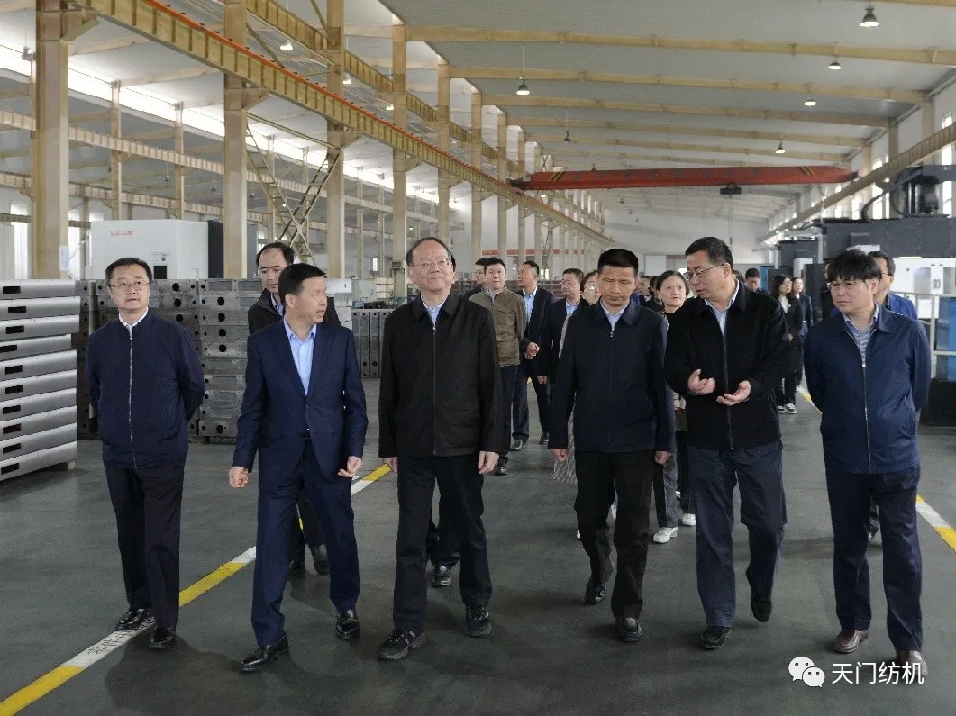4月14日,中國紡織工業聯合會黨委書記兼秘書長高勇,在中國紡織機械協會會長顧平的陪同下,帶領紡機協會相關部門負責人到天門紡機調研。天門市委副書記、市長楊興銘,副市長高文博以及市經信局局長張文輝陪同參與調研活動。