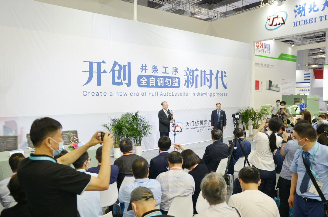 6月12日,天門紡機在上海的中國國際紡織機械展覽會暨ITMA亞洲展覽會上,舉行“開創并條工序全自調勻整新時代”新品發布會,自主研發的全球首款超大卷裝帶自調勻整并條機TM19、運用USG3系統及多項專利技術的并條機TM15、帶全伺服控制的多功能TM65型細紗機首發上市。