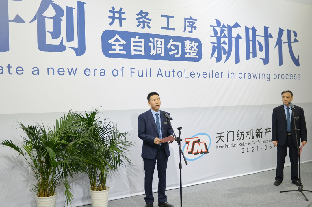 天門紡機董事沈方勇向出席會議的行業領導、專家和嘉賓表示熱烈歡迎和誠摯的謝意,并表示,并條工序全部實行自調勻整是公司在智能紡織裝備研發上跨出的重要一步,將開創棉紡并條機一個新時代,將對紡紗企業裝備提檔升級、產品提質增優作出重要貢獻。公司愿意做好踏腳板、鋪路石,為紡織工作智能制造貢獻綿薄之力。