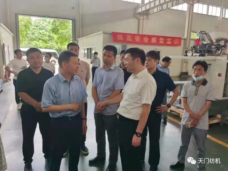 6月15日,酷暑炎熱,天門市委副書記、市長楊興銘,副市長高文博以及市經信局、市科技局、市政務服務和大數據管理局、市經濟開發區等相關部門負責人專程來到天門紡機,現場調研技術裝備改造升級和安全生產工作。