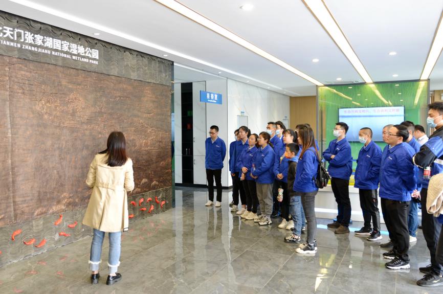 在公園管理員的導引下,我們拾級而上,參觀了科普館。這座科普館是以張家湖歷史、水文、生態為脈絡,傾心打造的集生動、趣味于一體的現代視聽平臺,還原了農耕時代人類休養生息的原貌和花鳥魚蟲百態。走在曲曲折折的參觀回廊上,感覺耳朵不夠使,眼睛也不夠用,太多的信息總是撲面而來。同事們都在感嘆:真是不虛此行,既休閑、愉悅了身心,又學到了知識,收獲滿滿。