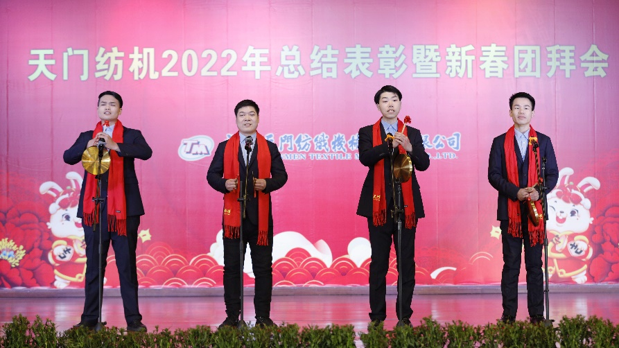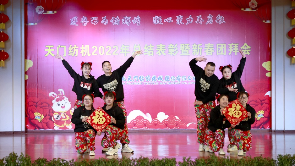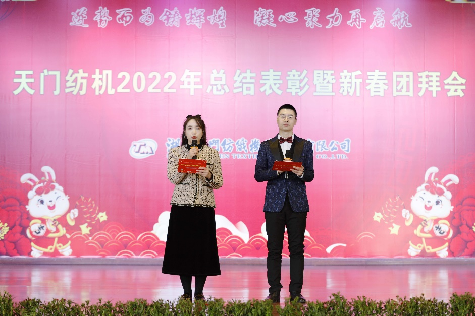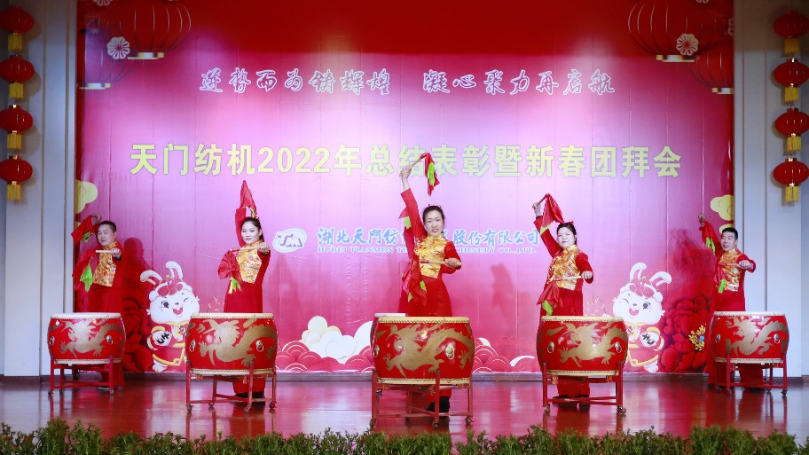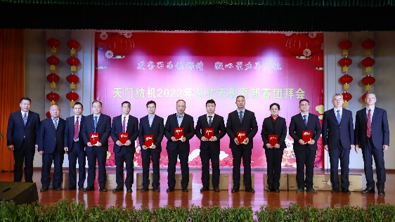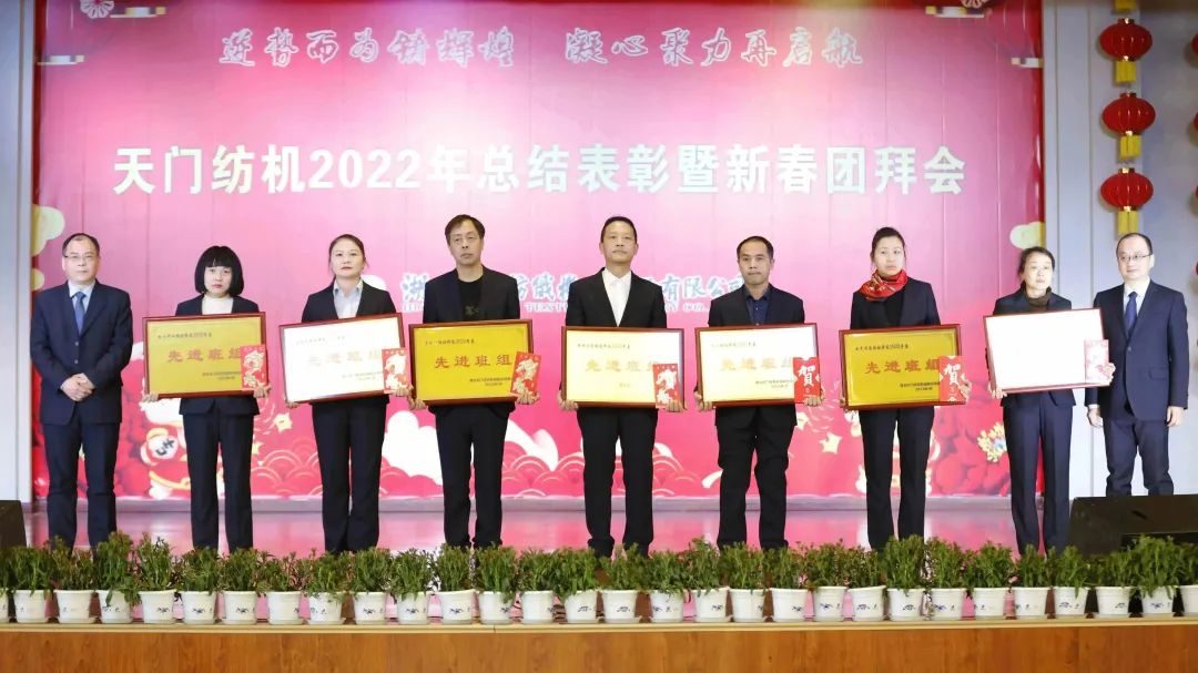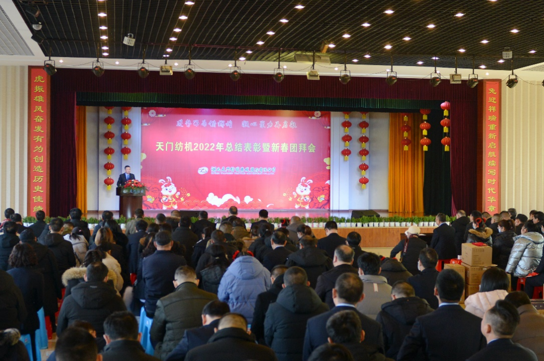 2023年1月18日下午,天門紡機艷陽高照、喜氣盈門,2022年工作總結表彰暨新春團拜會在綜合樓多功能廳隆重舉行。
