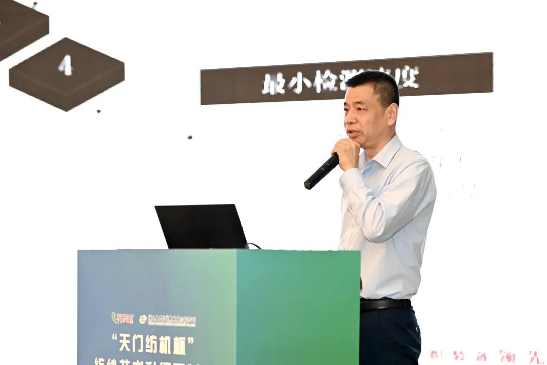 天門紡機品控總監樊早斌進行了題為《并條機的新技術與自調勻整技術》的專題演講,重點講解了并條機在紡紗工序中的地位與作用,并條工序升級的重要性,其中闡述了運用模塊化的設計和智能自動化以及DSP技術的應用等,響應了天門紡機“當民族工業精益表率,做紡織裝備領先企業”的愿景。