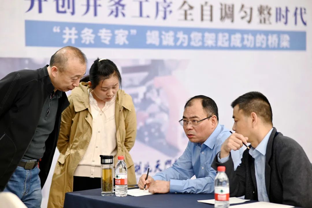 上午的技術分享交流環節中,天門紡機售后服務中心主任于少波作了《并條機的規范使用及常見疑難問題解決》的分享,通過對工藝合理牽伸、精確校準、定期維保等方面的詳細說明,全面透徹的講解了并條機的使用規范,使紡企代表對并條機的使用有了更深的認識。