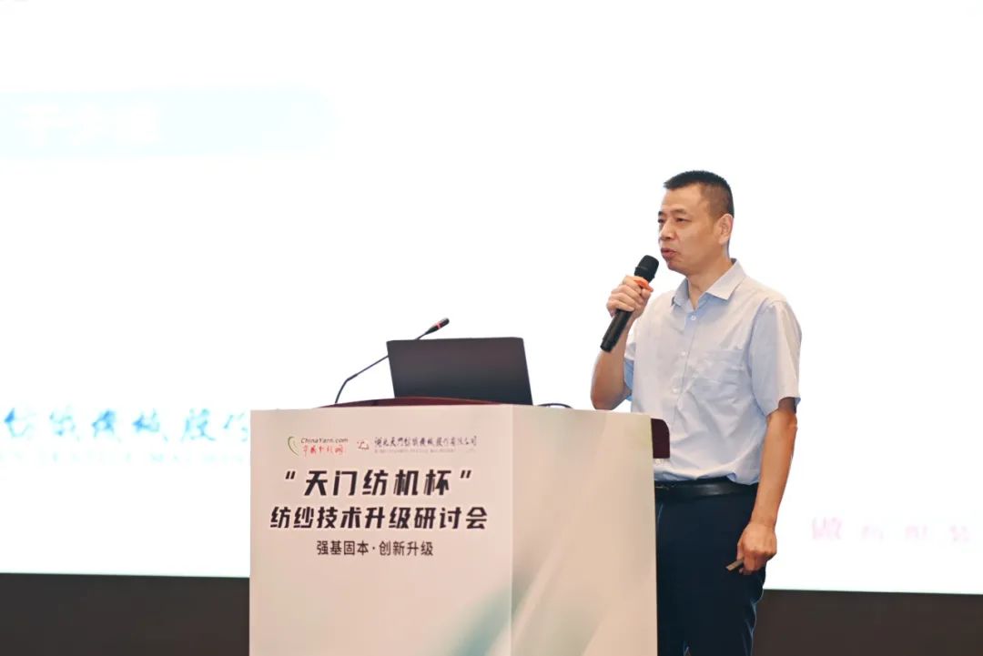沛縣縣委常委、常務副縣長辛松在致辭中強調,沛縣高度重視紡織產業發展,希望通過舉辦此類高水平、高規格的研討會,推動沛縣紡企技術升級和產業發展;沛縣紡織協會會長董良騮對“天門紡機杯”紡紗技術升級研討會在沛縣召開表示祝賀,他表示,這次活動將為沛縣紡織行業的技術整體提升、產業發展帶來更多的機遇。中國紗線網總編王果剛分析了當前紡織行業面臨的機遇和挑戰,指出了紡企要關注的多項關鍵因素;微山縣泰豐紡織有限公司副廠長董勤楠作了題為《陸S工藝在萊賽爾紗線生產中的應用實踐》的報告,分享了通過優化工藝設計方案為企業提質增效的創新成果及天門紡機T1系列并條機在生產線上的應用經驗。