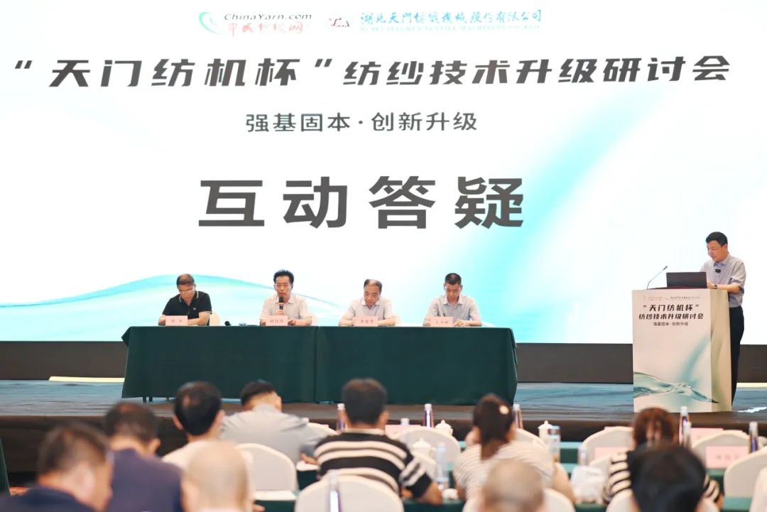 在專家互動答疑環節中,中國紗線網、天門紡機等單位的4位專家走向前臺,依次對紡織企業相關人員提出的設備操作、技術改造及企業未來發展等問題進行了答疑解惑。