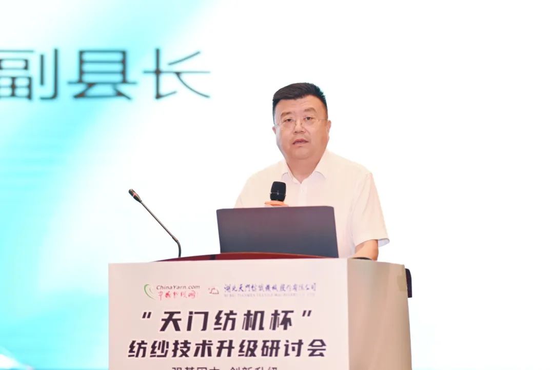 在當天下午舉行的開幕式及主題報告會上,沛縣縣委常委、常務副縣長辛松,沛縣紡織協會會長董良騮,天門紡機總經理焦倫進,中國紗線網總編王果剛等領導先后致辭。