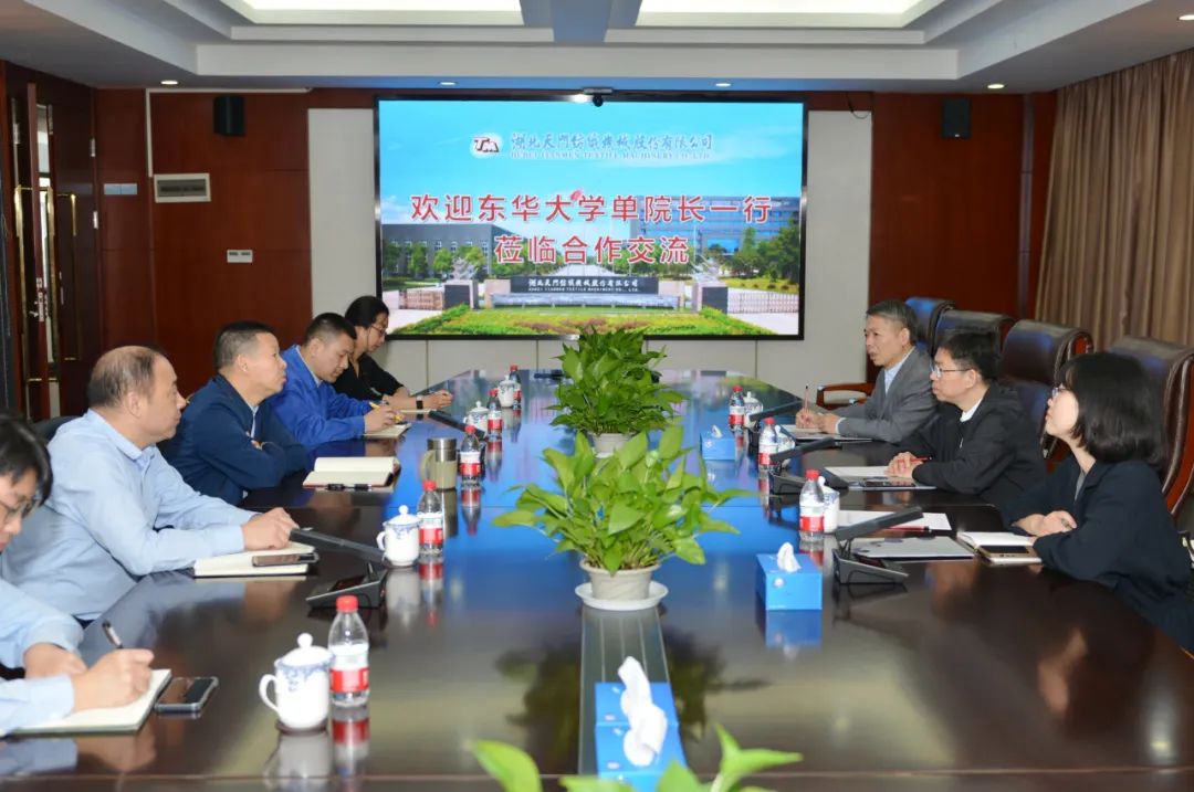 2023年10月24日上午,東華大學機械工程學院單鴻波院長、周其洪副院長、李姝佳博士蒞臨天門紡機進行校企合作交流。