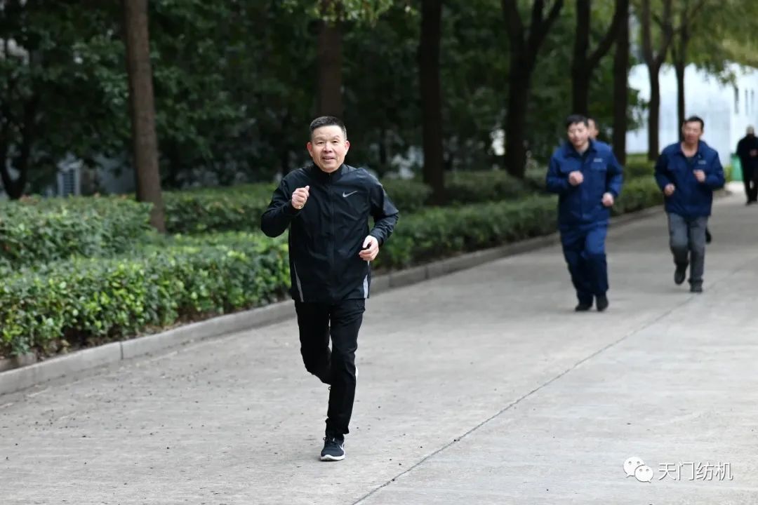 公司董事長沈方勇精神飽滿、斗志昂揚,以穩健的步伐跑完了850米賽程,成績超過絕大部分年輕人。