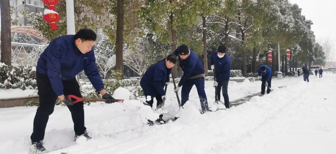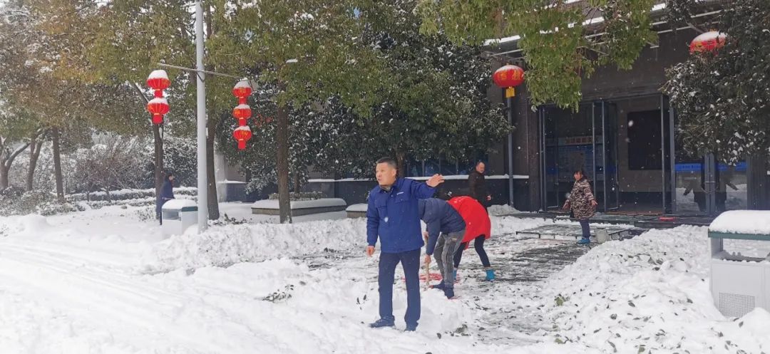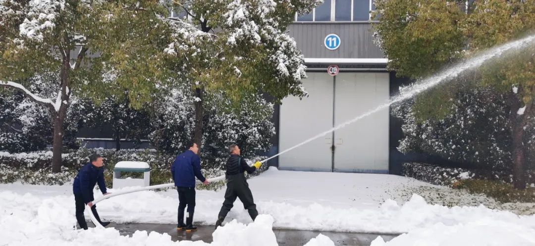 2月4日清晨,公司董事長沈方勇率先趕到公司,組織各批先期到達公司的干部員工,帶上鐵鍬和竹竿,清除路面和樹木積雪,以保證員工進出的安全。