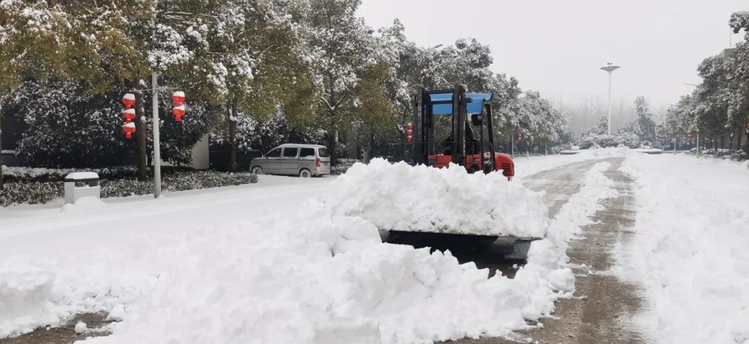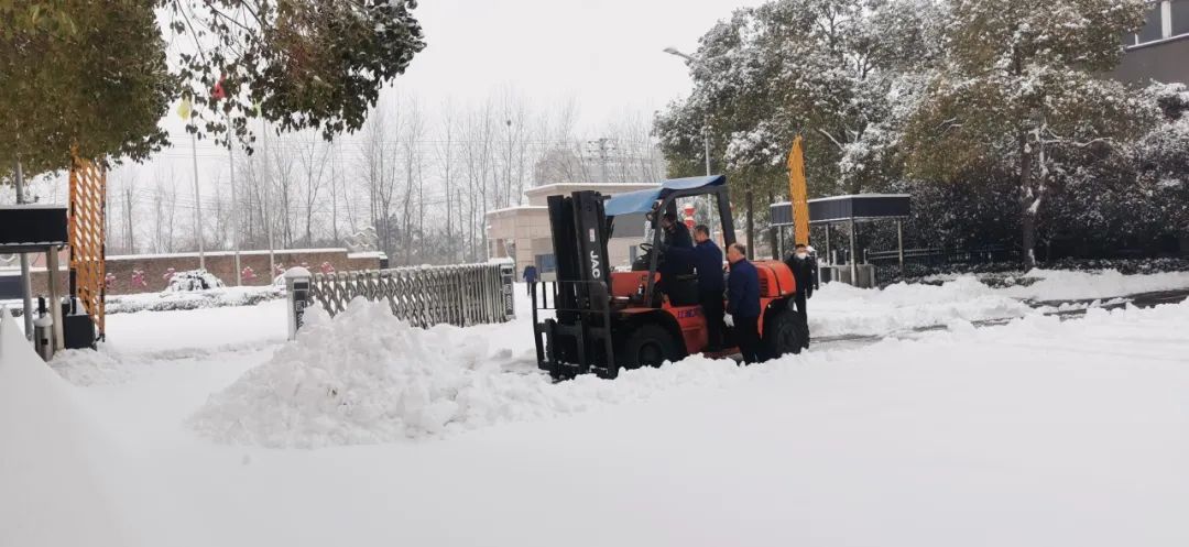 除雪工作不松勁,生產(chǎn)任務(wù)更不停歇。大量車間人員按時上崗,并派出多輛鏟車加快清理進度。