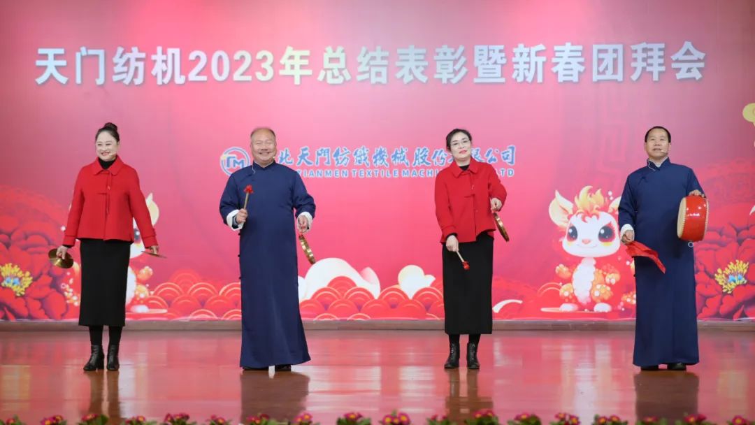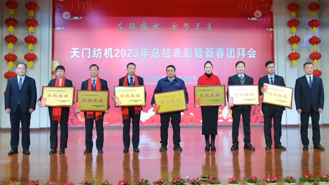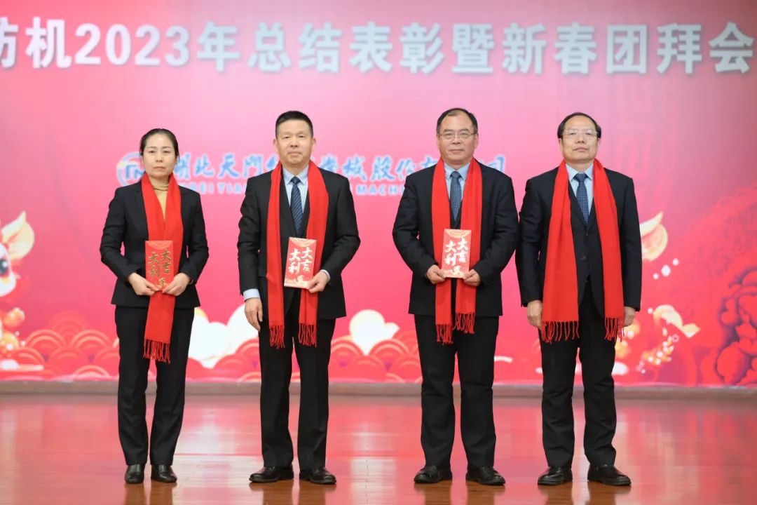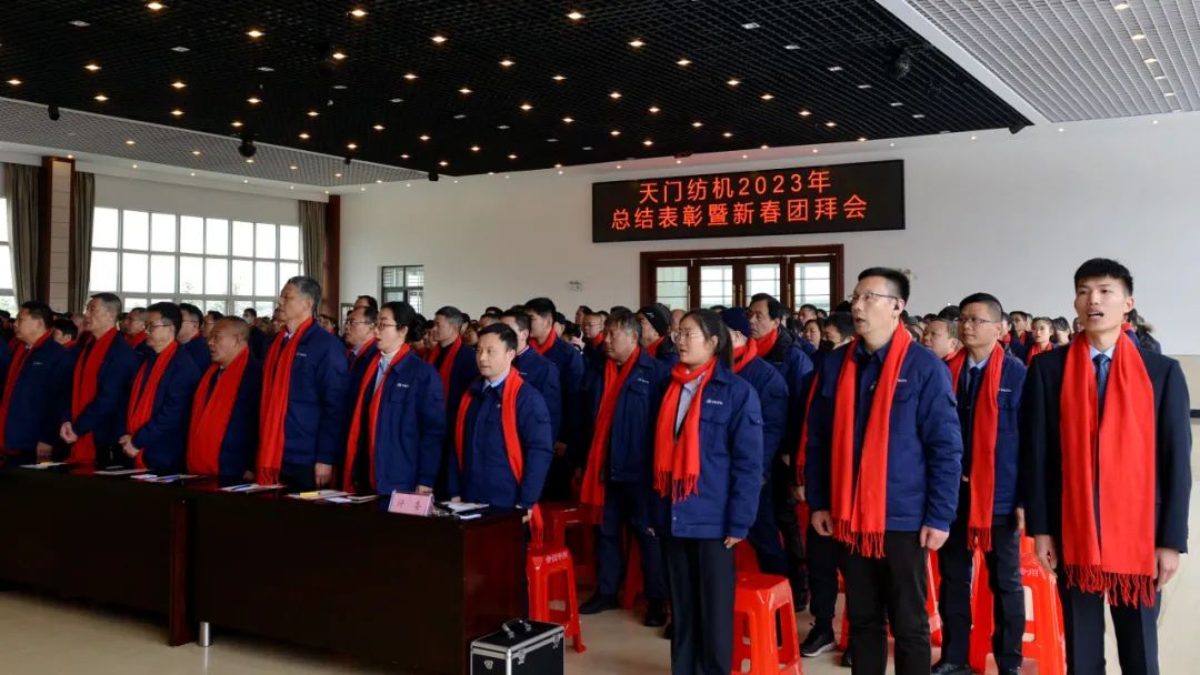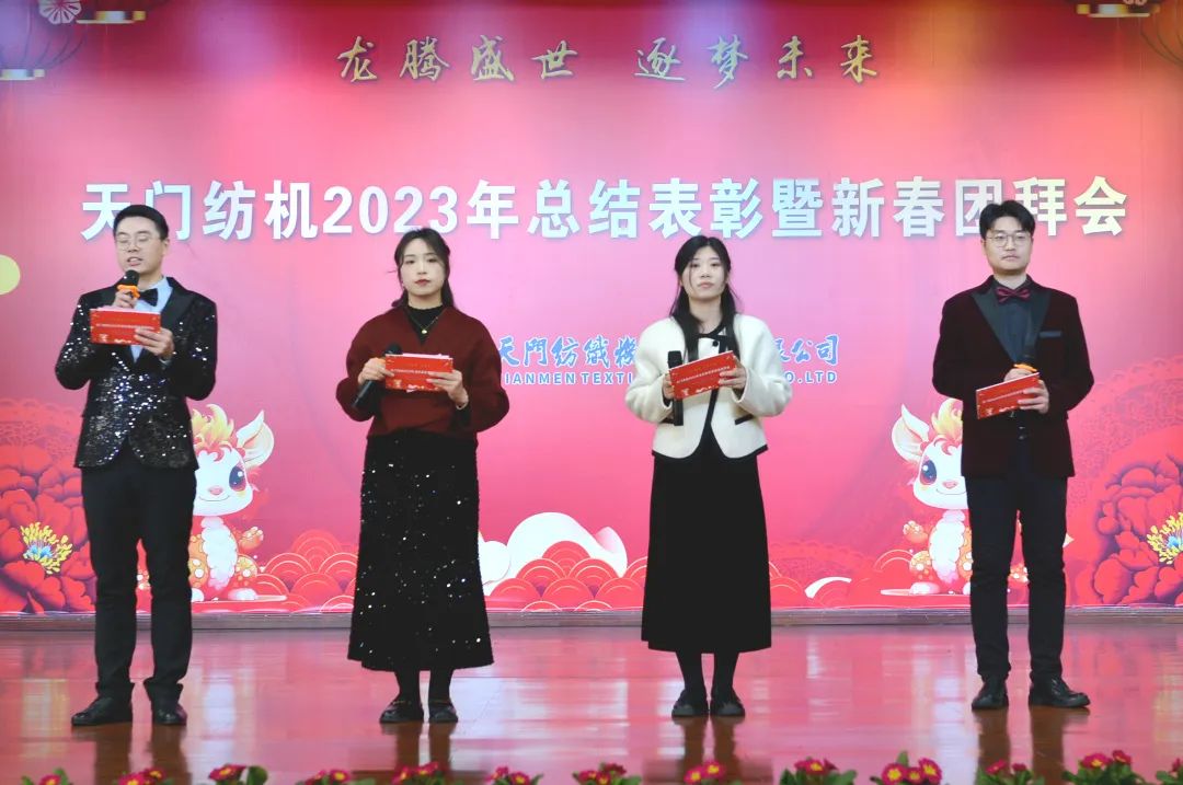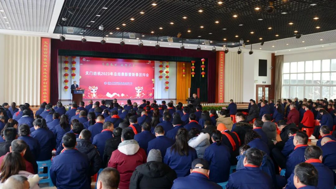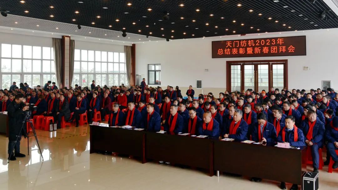 2024年2月6日下午,天門紡機歡歌笑語、喜氣洋洋,公司2023年工作總結表彰暨新春團拜會在綜合樓多功能廳隆重舉行。