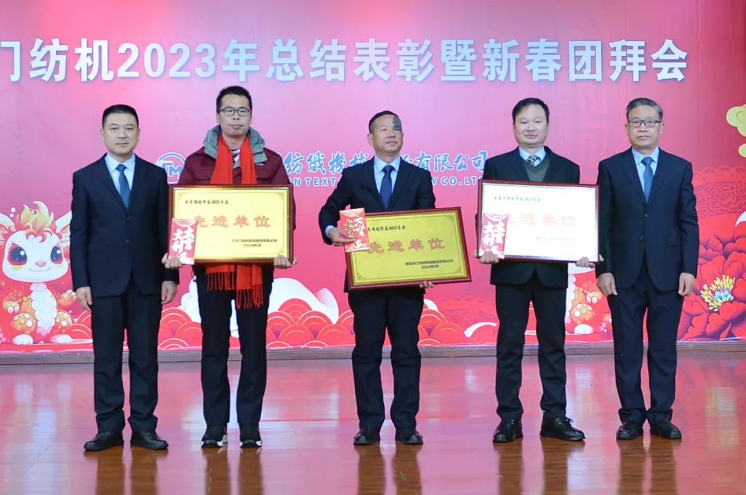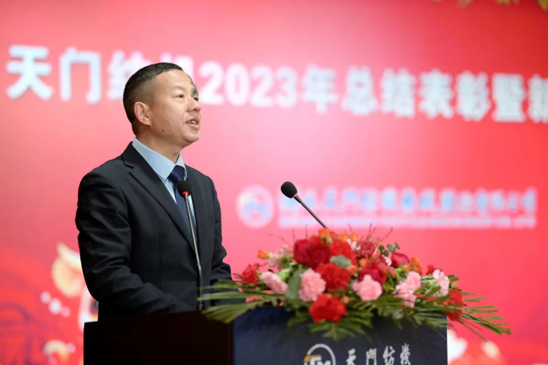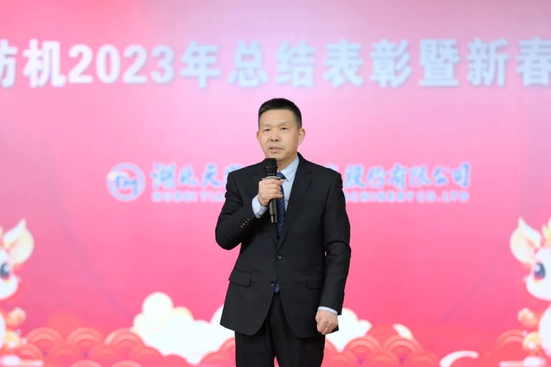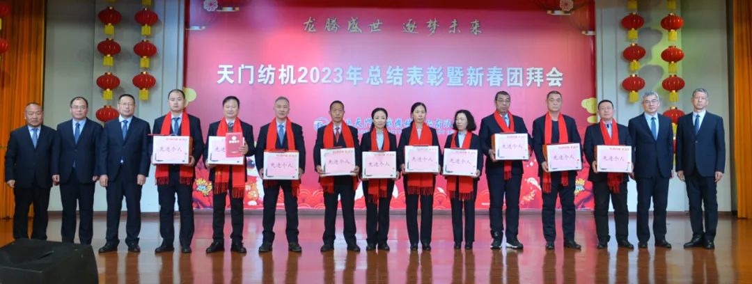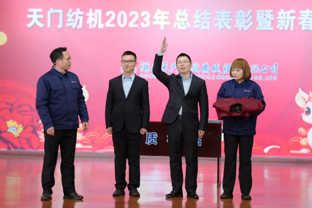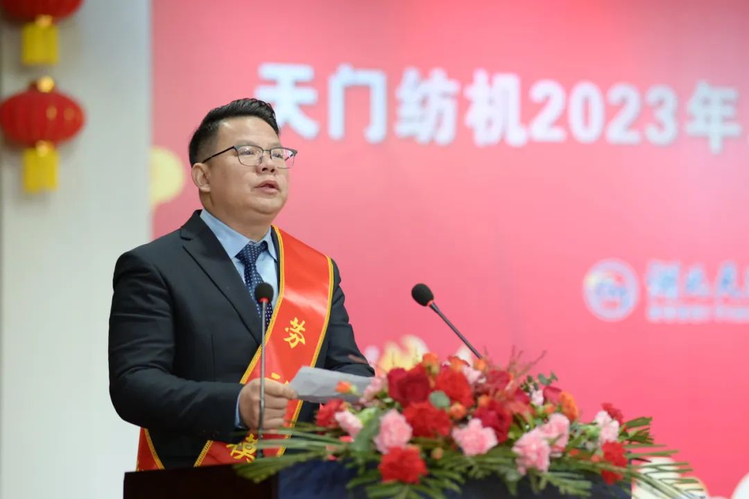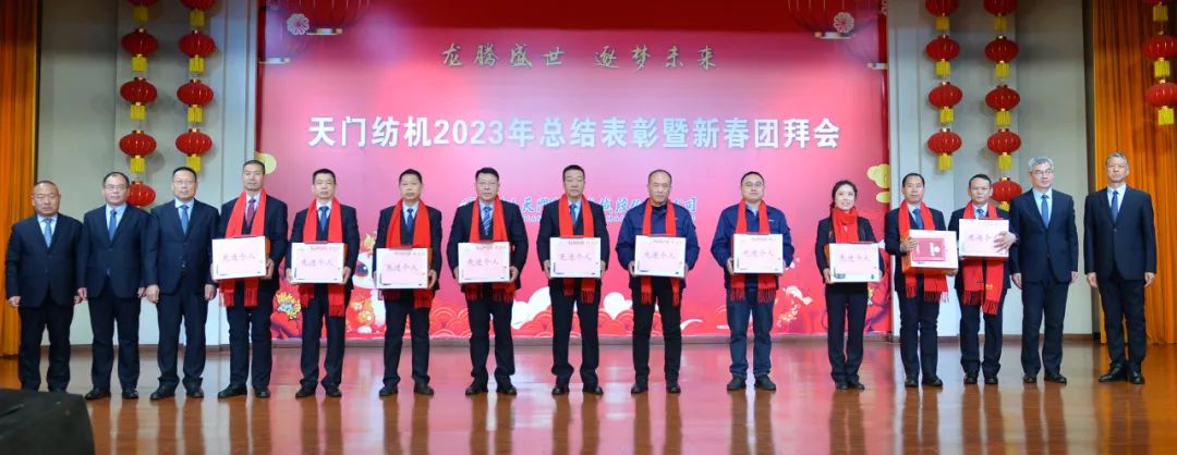 2024年2月6日下午,天門紡機歡歌笑語、喜氣洋洋,公司2023年工作總結表彰暨新春團拜會在綜合樓多功能廳隆重舉行。