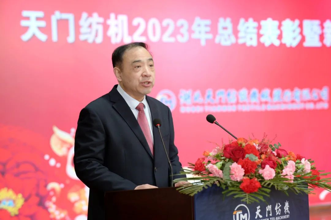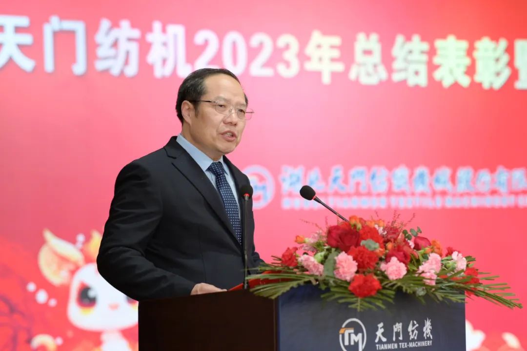 公司總經理焦倫進作工作報告。他說,2023年,天門紡機堅持守正創新,扎實推進高質量發展,穩中求進,取得佳績。全年銷售額、利潤、入庫稅金保持最好水平,發展態勢良好。具體表現為:產品研發再奏凱歌,新一代產品競相亮相;生產制造再立新功,圓滿完生產任務;市場營銷再顯身手,產品市場占有率穩中有升;技術改造再現驚喜,“智慧工廠”項目和信息化建設有序實施;人才工作再開新局,梯隊建設初具雛形;項目申報再創佳績,榮譽和效益實現雙豐收;基礎管理再擔重任,企業基石得到夯實;文化建設再展風采,公司凝聚力進一步提升。新的一年,天門紡機將以“五個轉型”發展戰略為引領,加快產品改進和產品開發,穩步推進技術改造和生產經營模式轉型,繼續拓展國際國內市場,凝心聚力,再創佳績。