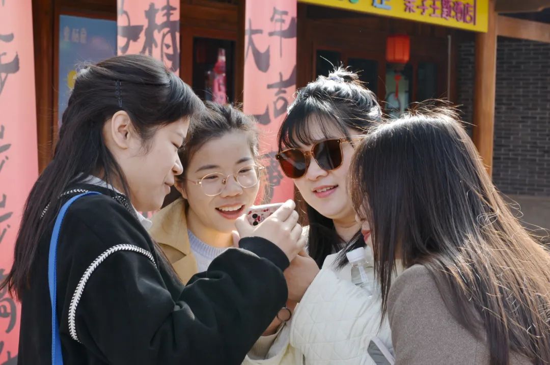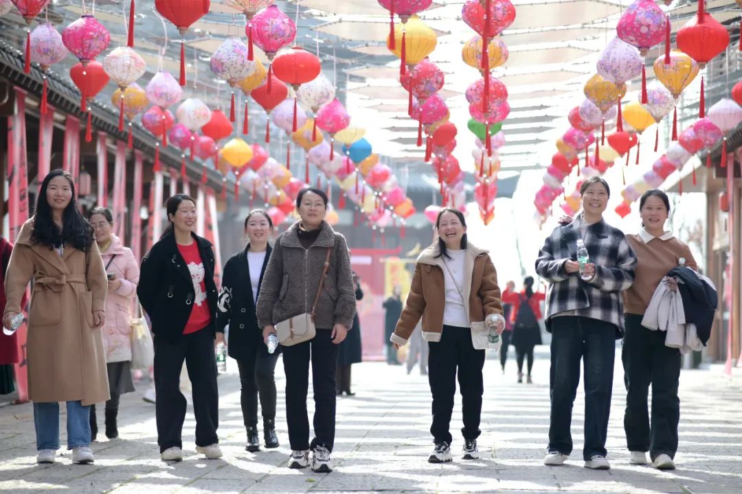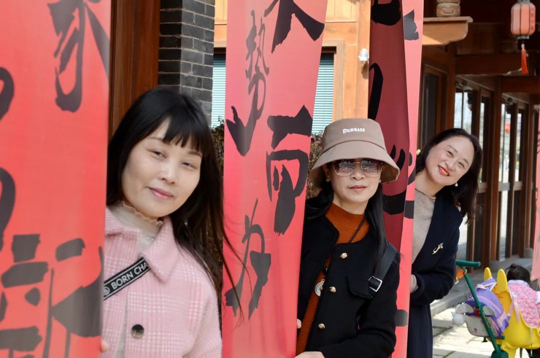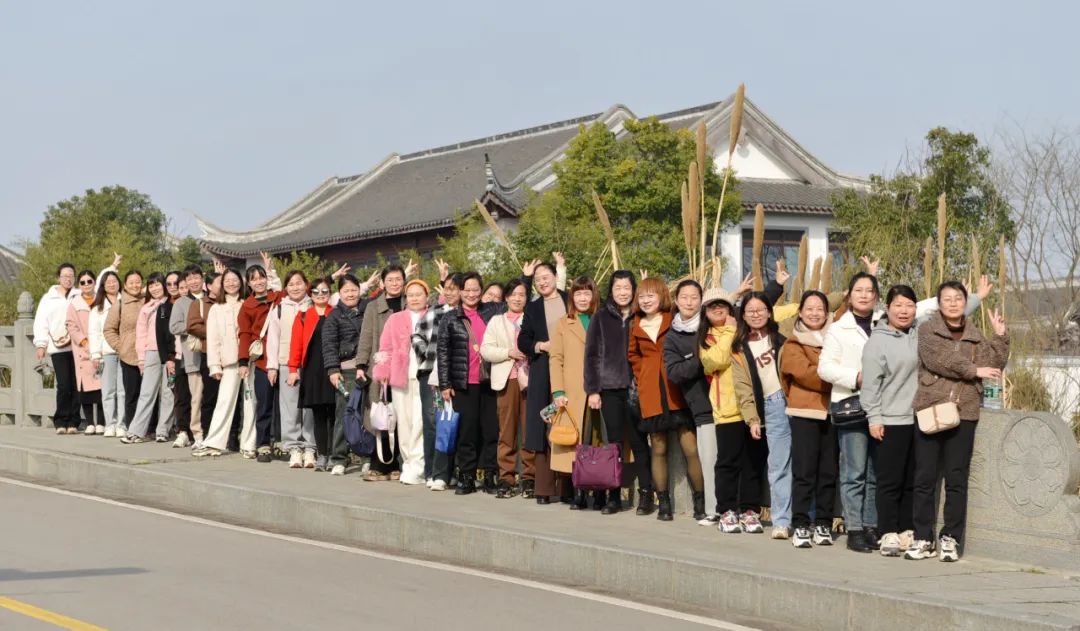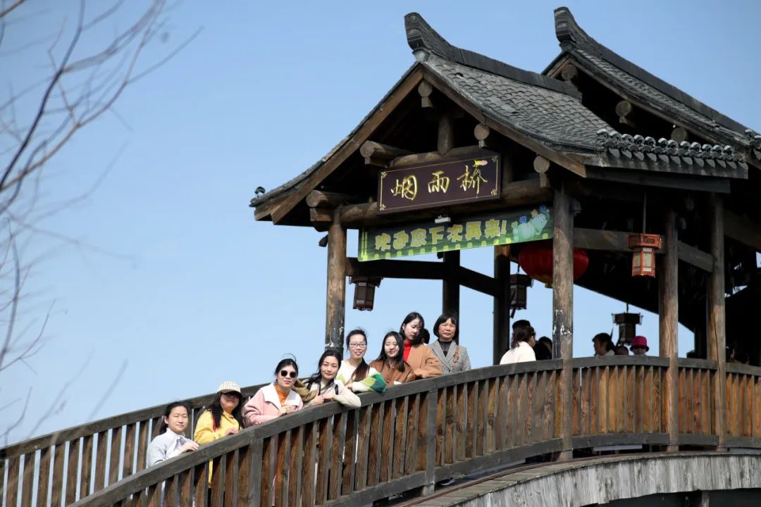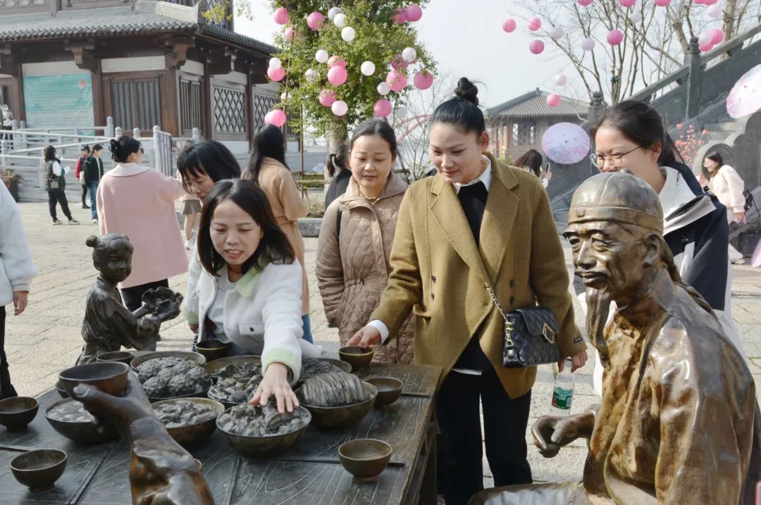 游覽過程中,女工們有的參觀小鎮書院,了解當地的歷史文化;有的在小銅人雕塑旁合影留念,定格美好時光;有的登上文昌閣遠眺,感受湖光山色。