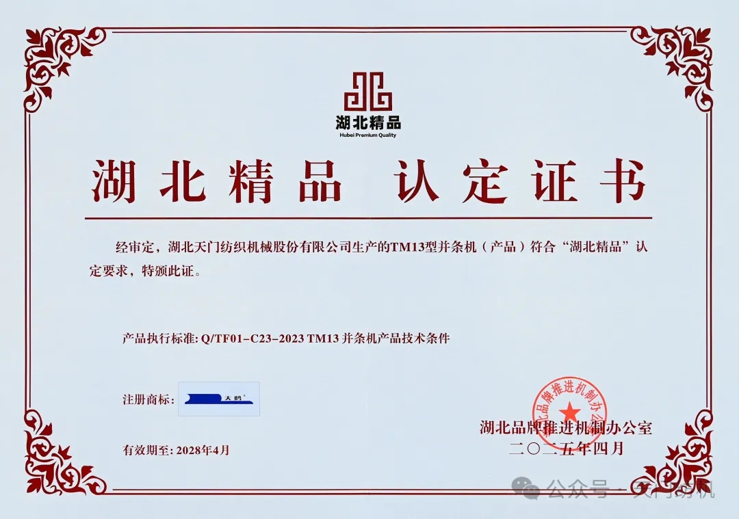 “湖北精品”作為湖北省卓越質量品牌的杰出代表,已成為湖北品質的圖騰。天門紡機產品入列“湖北精品”,就是對其匠心與創新精神的高度認可。