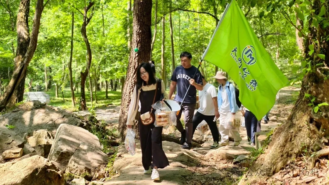 抵達大口國家森林公園后,大家以青山為卷、以腳步為筆,開啟了一場“意志磨礪之旅”。崎嶇的山路考驗著徒步登山者的體力與毅力。面對陡坡險徑,大家互伸援手、默契配合,一句句“抓緊我”“注意腳下”的叮囑傳遞著溫暖。最終,全員成功登頂觀景臺,俯瞰層巒疊翠,用合影定格了“青春同心”的動人畫面。