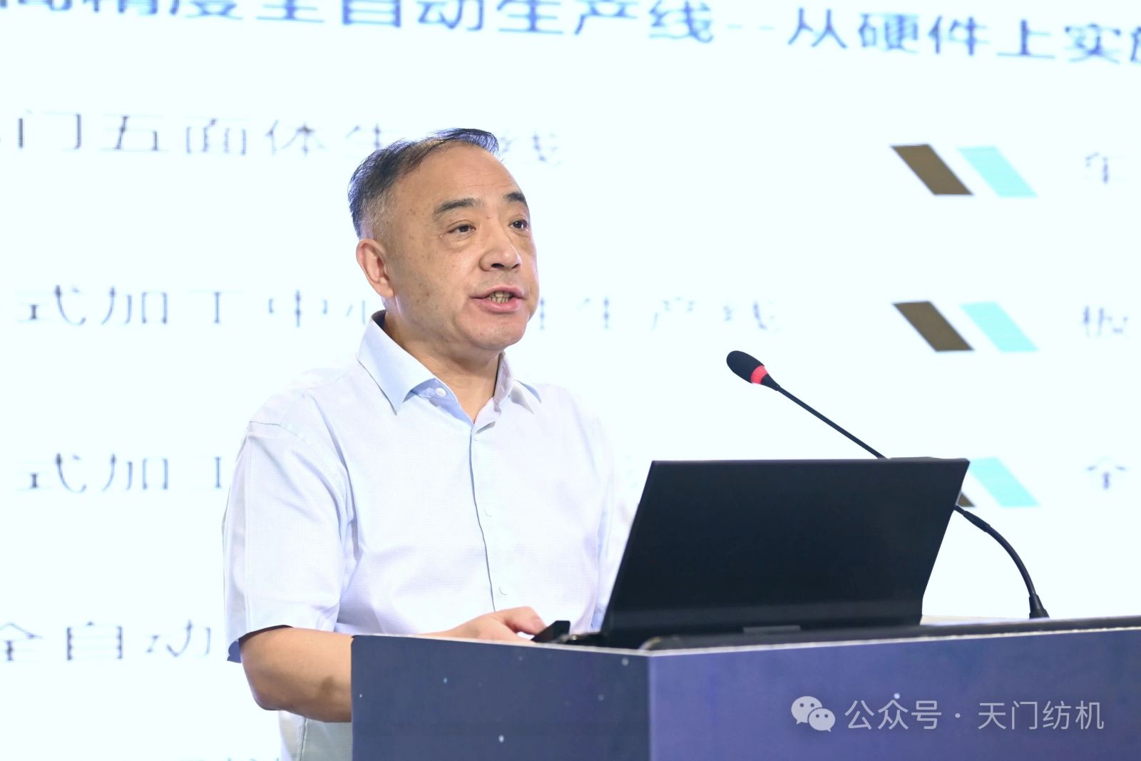 天門紡機董事長沈方勇在致辭中分享了天門紡機四十余年專注并條機研發,從小作坊逐步發展成為國家重點專精特新小巨人企業及榮獲“單項冠軍產品”稱號的現代化企業的奮斗歷程。他指出,當前行業正處于重要發展窗口,本次峰會占據天時地利人和,注定會收獲滿滿。他強調,紡織工業不僅是國家經濟的重要支撐,更是增強綜合國力的關鍵力量。他呼吁,紡織同仁一定要堅定信心、強化合作,以質量為核心,共同提升中國紡織裝備的國際競爭力。