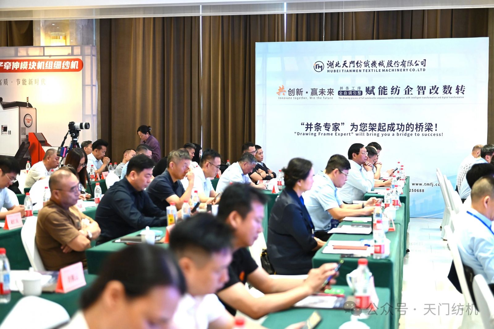 天門紡機總經理焦倫進在《并條機的創新與應用助力紡企高質量發展》報告中解析了并條機技術發展與創新方向,分享了天門紡機在核心技術上加快迭代的心得體會,展示了自調勻整技術在并條工序上的應用成果。他強調,并條機作為關鍵設備,其技術突破對紡織企業降本增效、實現高質量發展具有基礎支撐作用。