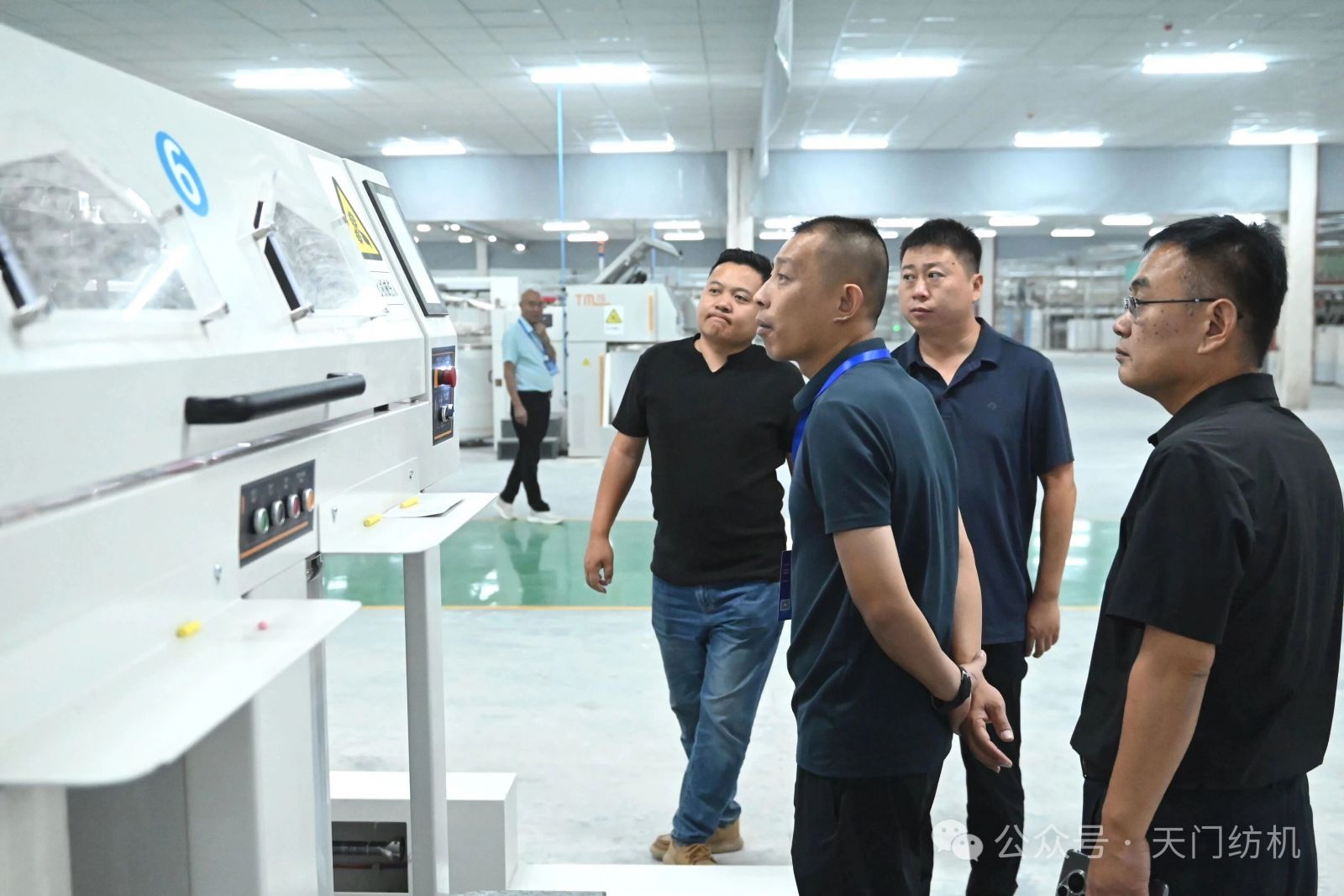 9月16日,參會代表赴新疆蘇錦紡織、新疆唐錦紡織及新疆前海元能織造等優秀企業參觀學習。值得一提的是,蘇錦紡織在2024年投產的20萬錠項目中,批量選用了天門紡機生產的TM系列并條機。這批設備自投產以來運行穩定、性能出色,獲得了企業高度認可。
